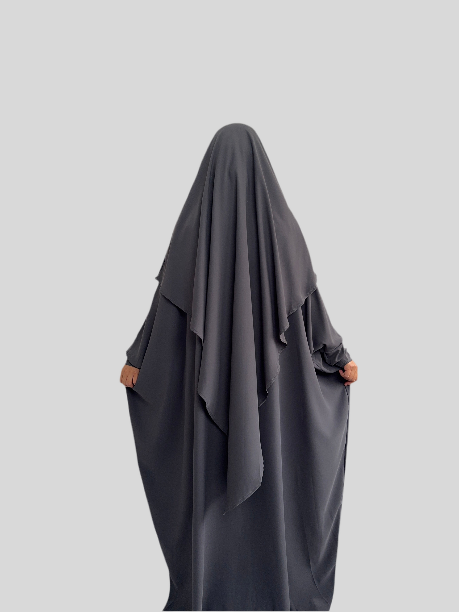 Dark grey Abaya & Khimar Set KHADIJA(Madina Silk)