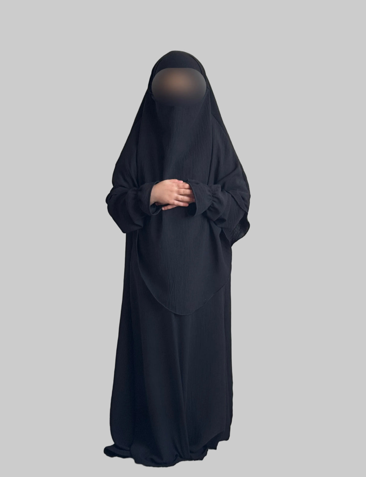 Specially designed for young girls, this beautiful set combines modest coverage with a soft, flowing fit, making it perfect for madrassa,prayer and masjid.